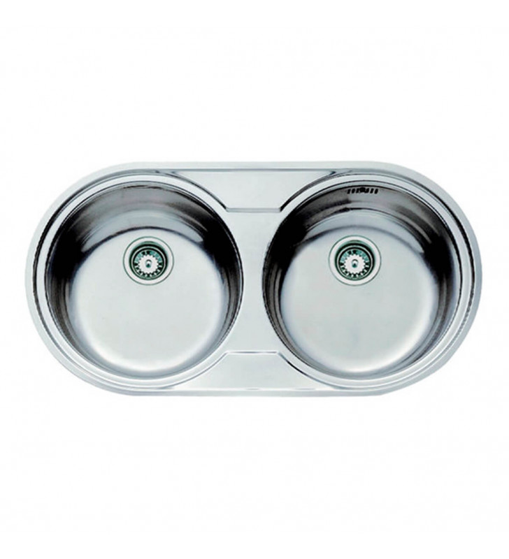 Dos cubetas.Acero inoxidable 18/10.Válvula canasta 3 1/2".Profundidad de las cubetas 160 mm.Mueble de 80 cm